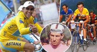 Sedm vládců cyklistiky. Kdo ovládl Tour, Giro i Vueltu? „Kanibal“ či Contador s Nibalim